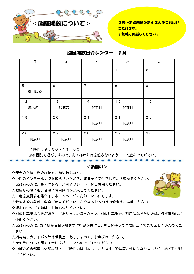 園庭開放カレンダー1月