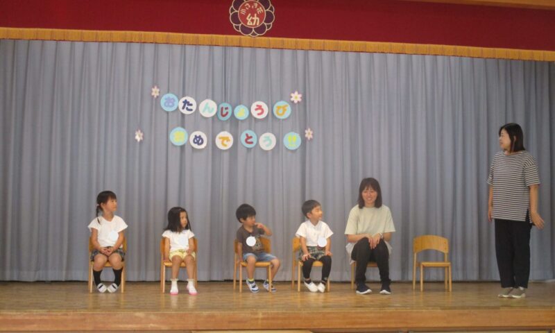 8月生まれのお誕生会がありました。みんなでたくさんお友達をお祝いすることが出来ました。また、各クラス、たくさん楽しい活動をしていました。暑さに負けず、暑さに気を付けて楽しんでいきたいです。
